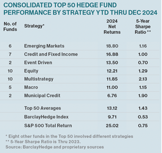 Throughout 2024, I tracked how these funds performed quarter over quarter. This latest report provides final full-year 2024 performance numbers of these 50 hedge funds.